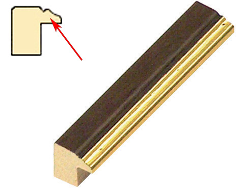 Slip ist ein englisches Wort und bedeutet “kleiner Streifen”. Für den Einrahmer ist sie eine nasenförmige kleine Leiste, die am Rande des Holzpassepartouts angebracht wird. Sie bildet eine optische Distanz zwischen Bild und Passepartout.