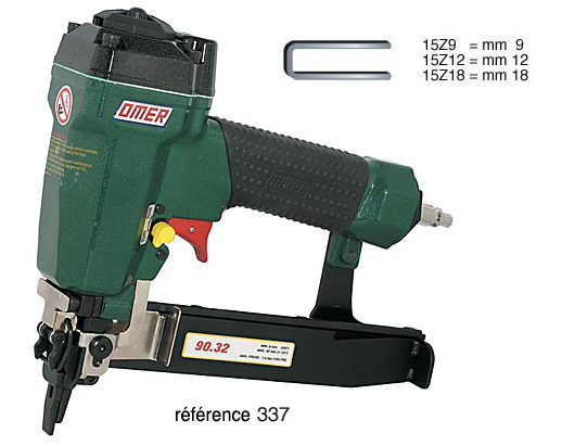 Par exemple un pistolet Omer 99/32 (référence 337 chez la Rinaldin) c’est à dire un appareil tirant des agrafes du type 90.